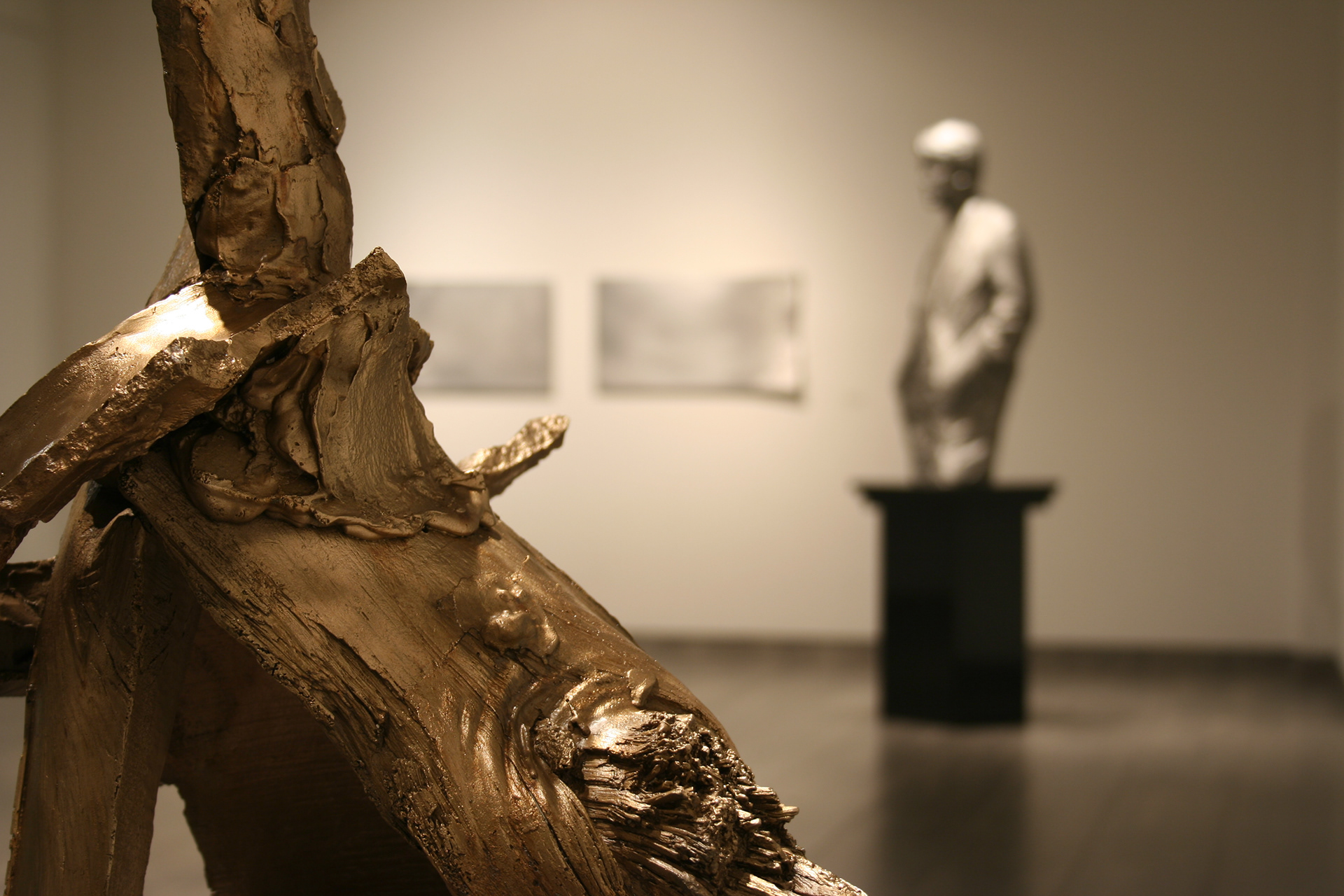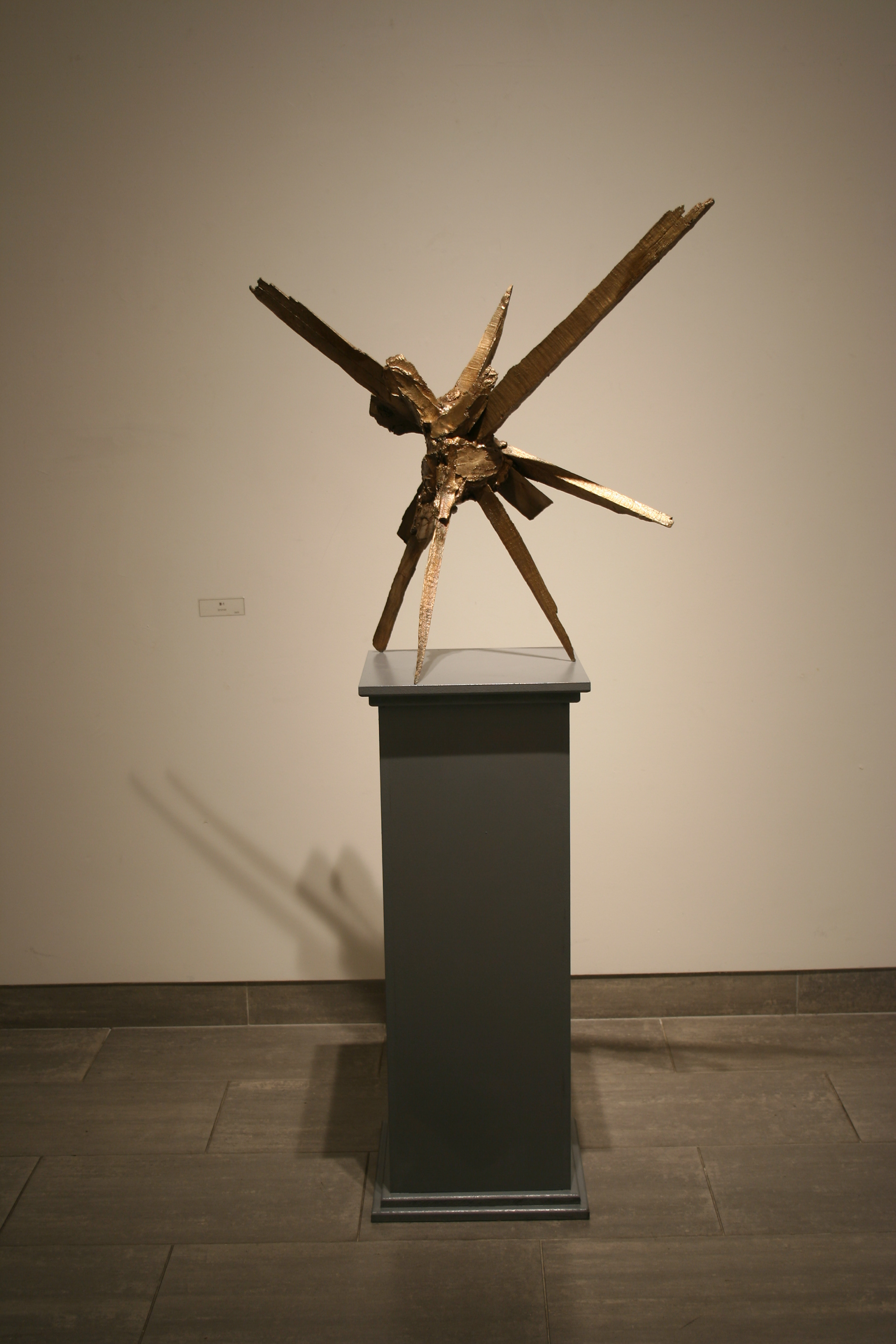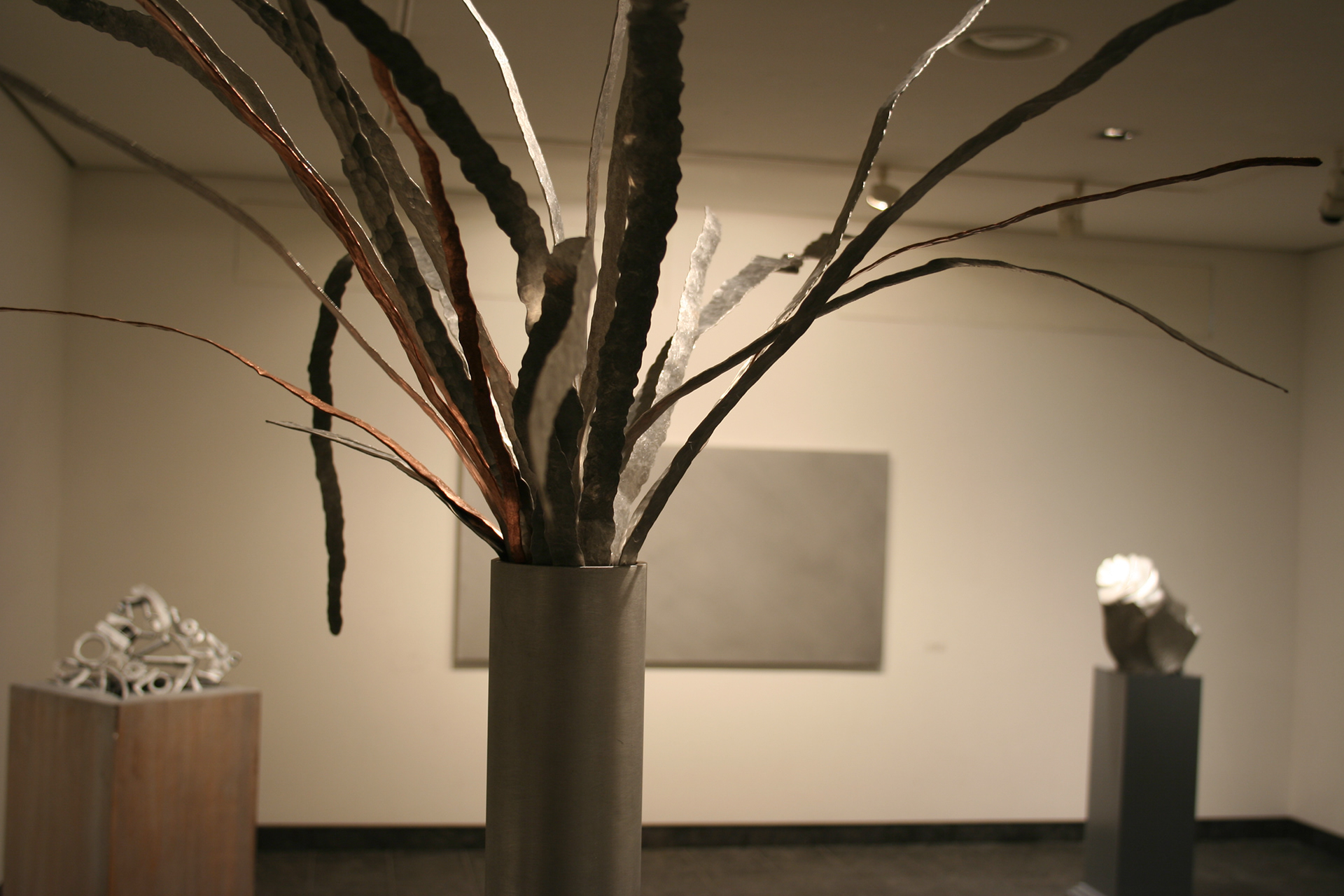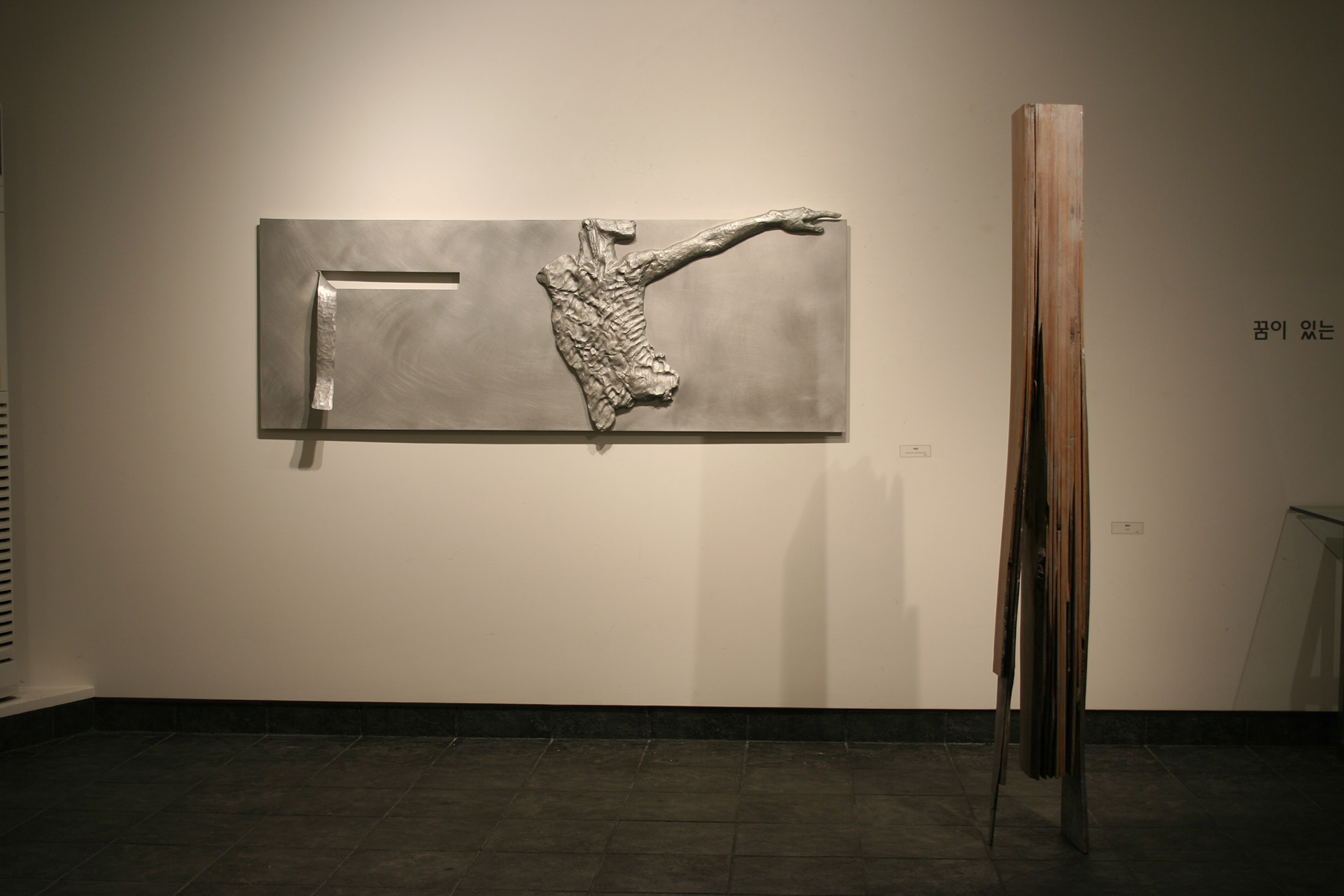 It may confuse the viewer that the show is a group exhibition. This is a way of playing. All that dealing with the figures, with the minimal forms-most of them are rectangular of metal partly cut or hammered, and with the direct plaster modeling, wood, object, I am showing a mess. Because I want show a series of scenes through such a certain confusion.